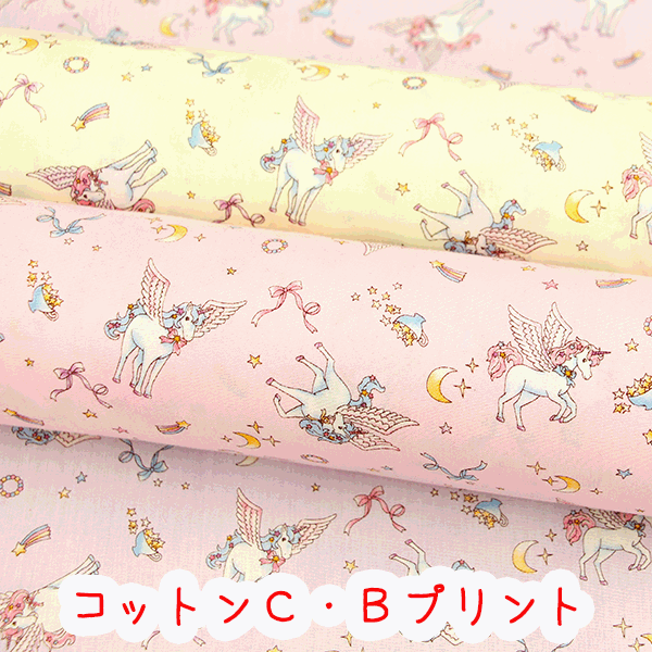 ☆C・Bプリント☆『星空とユニコーン』生地 コットンC・B生地/ユニコーン/ペガサス/ユニコーン柄/入園入学/激安/タケヒロヤ/布