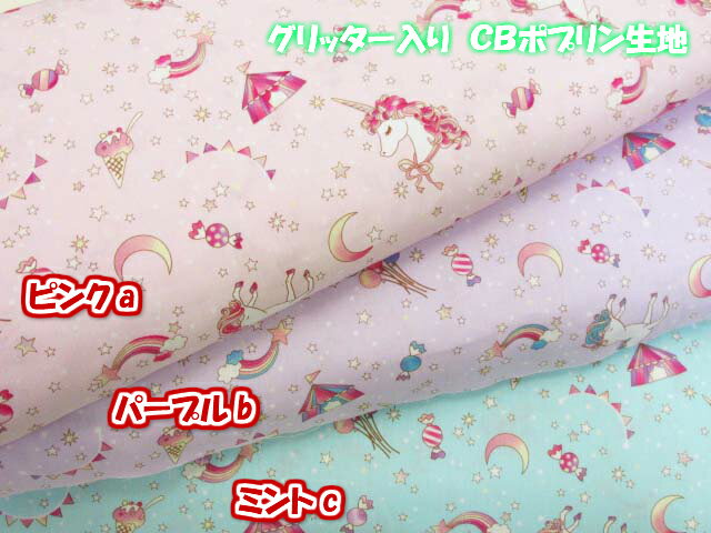 CBポプリン 綿プリント生地ユニコーンとスイーツ2色★110cm巾×10cm単位