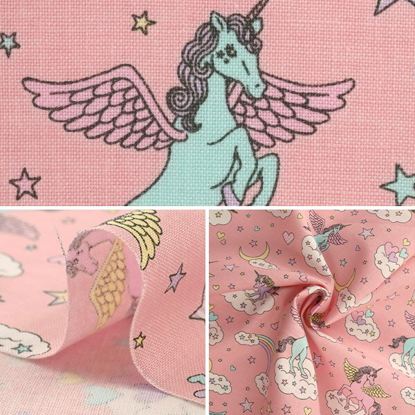 【数量5から】 生地 『シーチング バニラホイップ ユニコーン ピンク AP45505-1C』 豊島株式会社PLUS メルヘンチックなゆめかわシーチングプリント♪