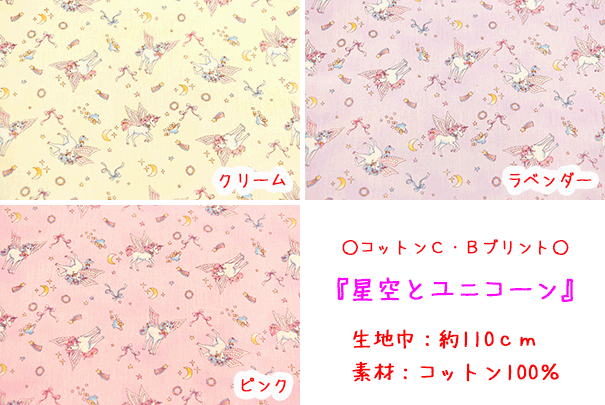 ☆C・Bプリント☆『星空とユニコーン』生地 コットンC・B生地/ユニコーン/ペガサス/ユニコーン柄/入園入学/激安/タケヒロヤ/布