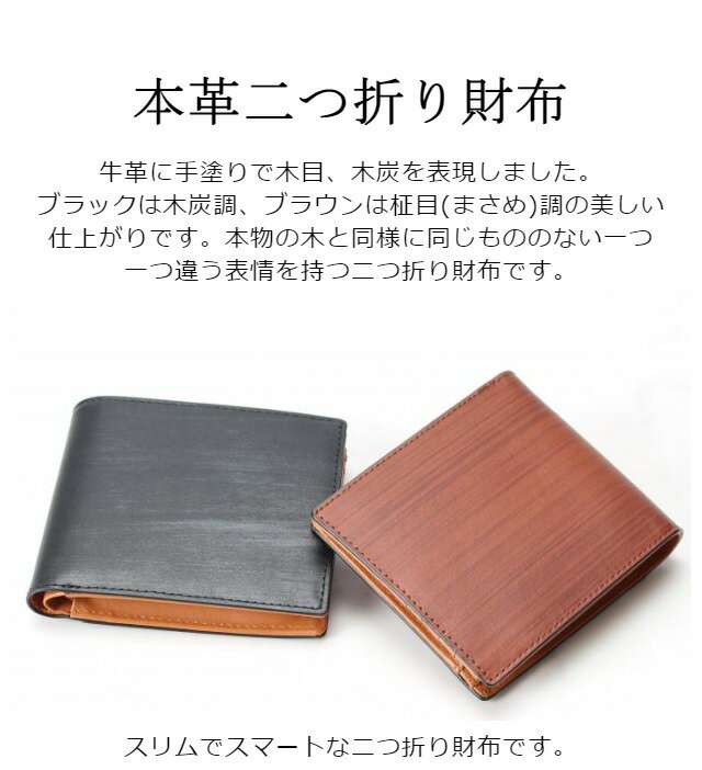 本物の木と同様に同じもののない一つ一つ違う表情を持つコンパクトな二つ折り財布です。